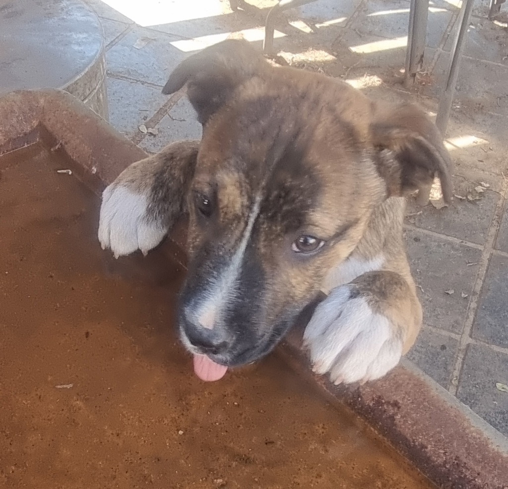 Lofty is almost four months old, he is a Mastiff Cross. He has a sweet and gental personality and is a sit back and watch puppy, but when he is ready, he will jump in and join in on all the fun.