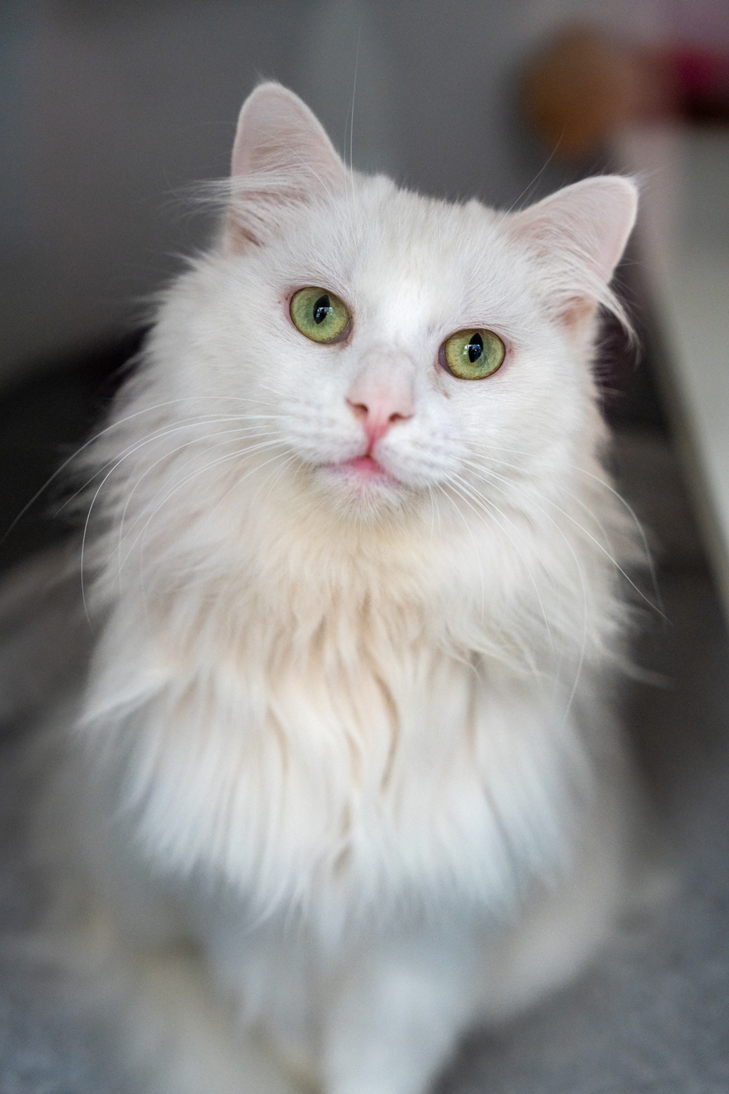This delicious and affectionate cloud of white is Jerry! With his majestic coat and heart-melting eyes, Jerry is the kind of cat that turns heads and warms even the iciest of hearts wherever he goes.