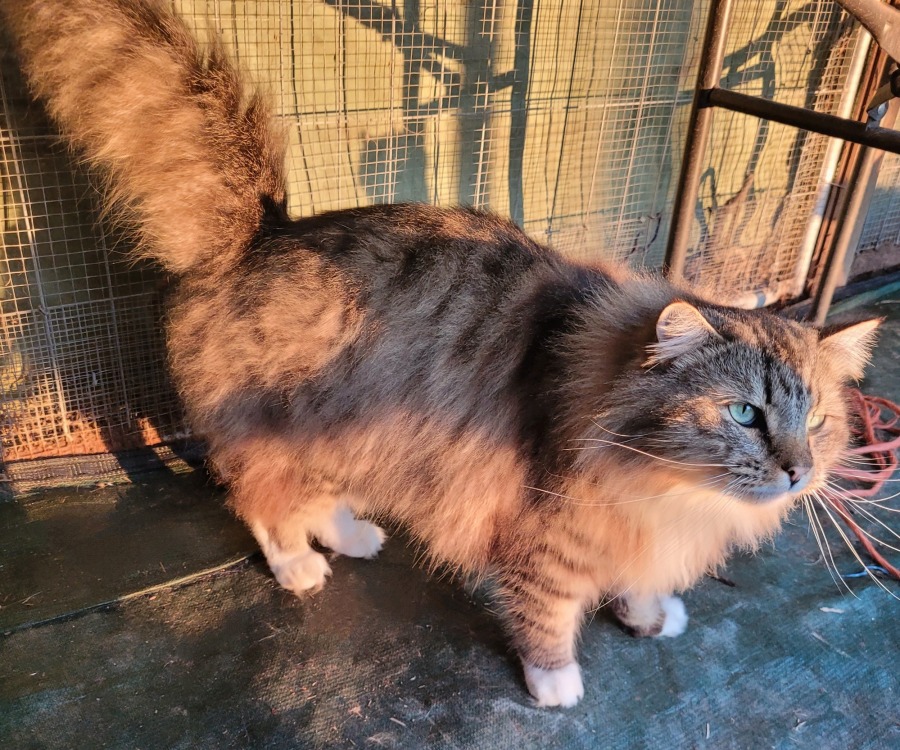 It's being exactly a year this August since he arrived. He was a very sad kitty when he arrived, but over the year his grown out heaps and is much happier in him self to be a cat.