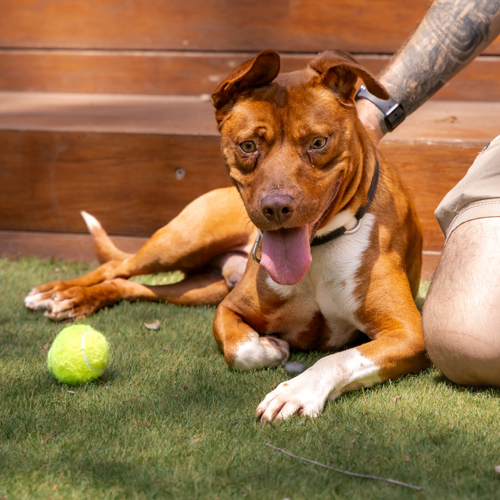 Max is a clever, goofy boy with a heart full of love and a few quirks that make him all the more special. He's the kind of dog who will keep you laughing with his rope toy zoomies and goofy expressions, but he also forms strong bonds with his people and thrives on connection, routine, and guidance.