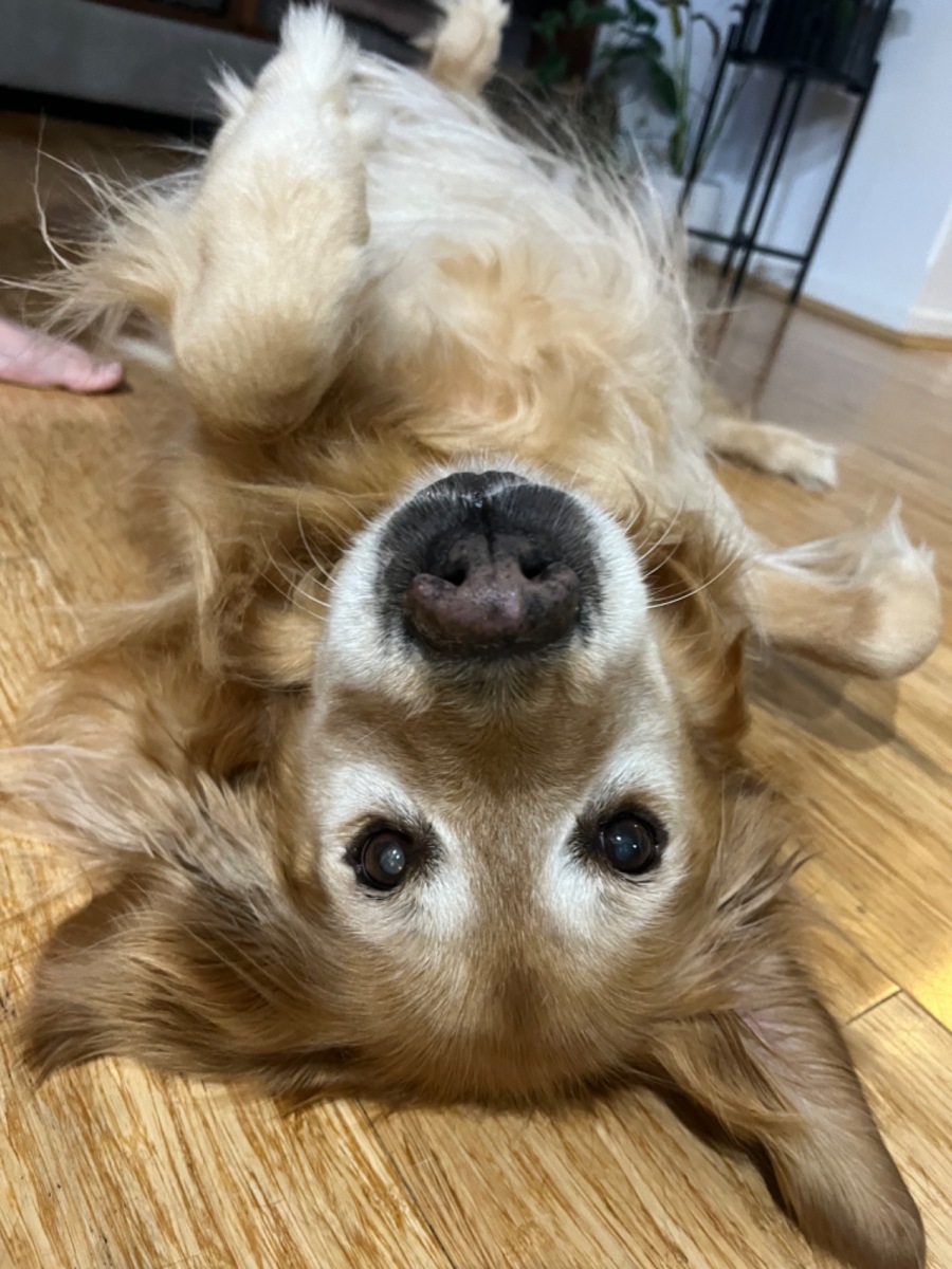 Daisy is a 13-year-old Golden Retriever with a gentle soul and a knack for sneaking up on the couch for some extra snuggle time. She loves being petted and will always greet you with a big smile after a nice walk. Daisy's calm and loving demeanor makes her the ideal companion for families with children; she can be trusted completely around little ones.