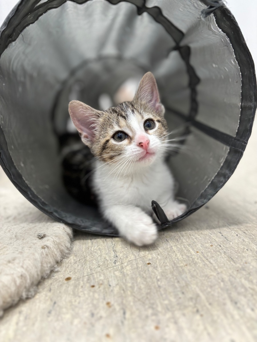 Meet Pumba, the spirited 9-week-old tabby and white Domestic Short Hair kitten who has both charm and charisma! This delightful little fellow is one of six kittens named after the beloved characters from "The Lion King," and just like his namesake, he's playful, friendly, and always ready for an adventure.