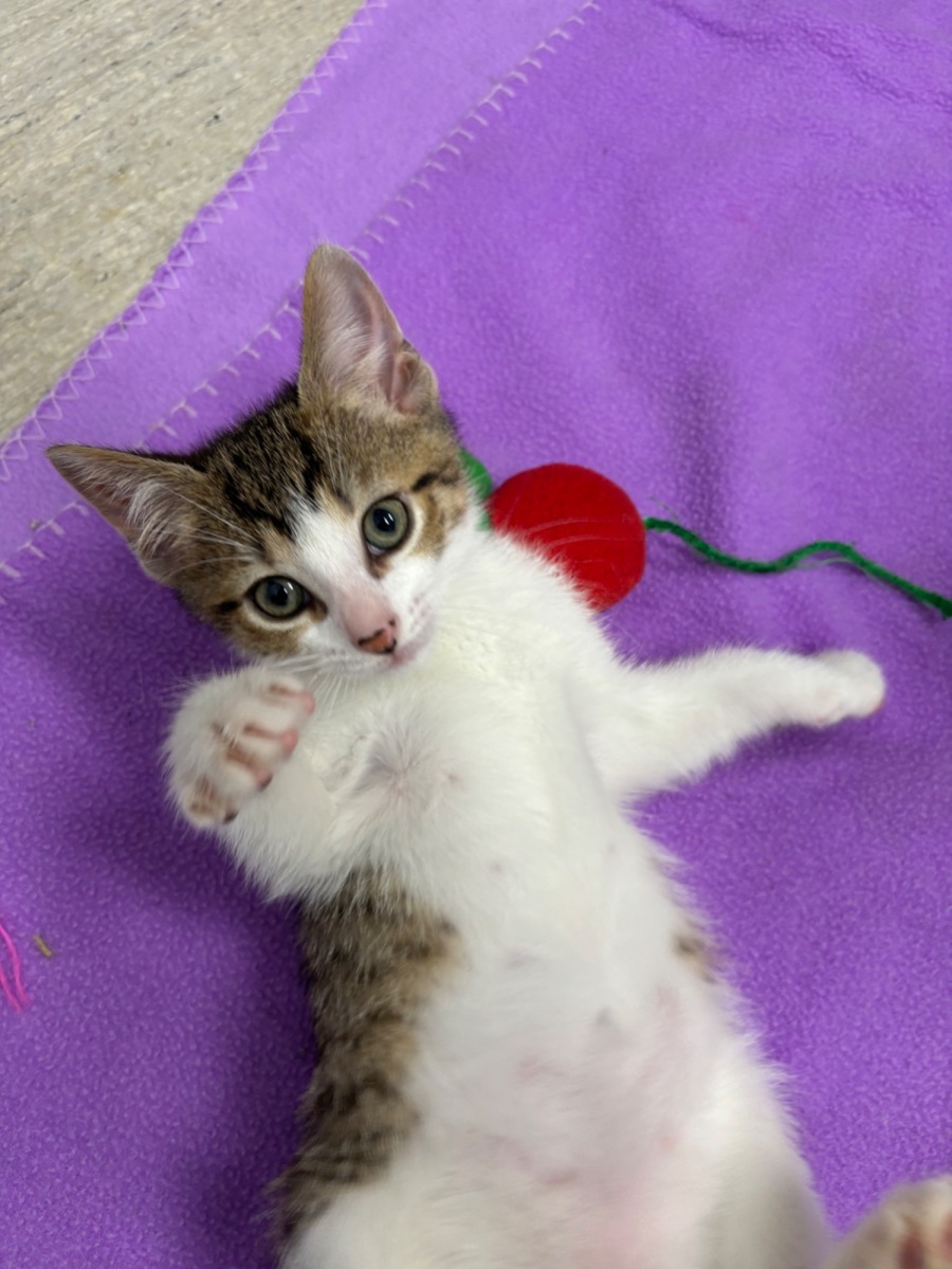 Meet Timon, an 11-week-old male Domestic Short Hair kitten with an adorable Tabby & White coat. Timon is a playful, cute, and friendly little fellow who has already stolen hearts with his lion-hearted charm. Named after the beloved character from "The Lion King," Timon is ready to embark on his own adventure with a new, loving family.