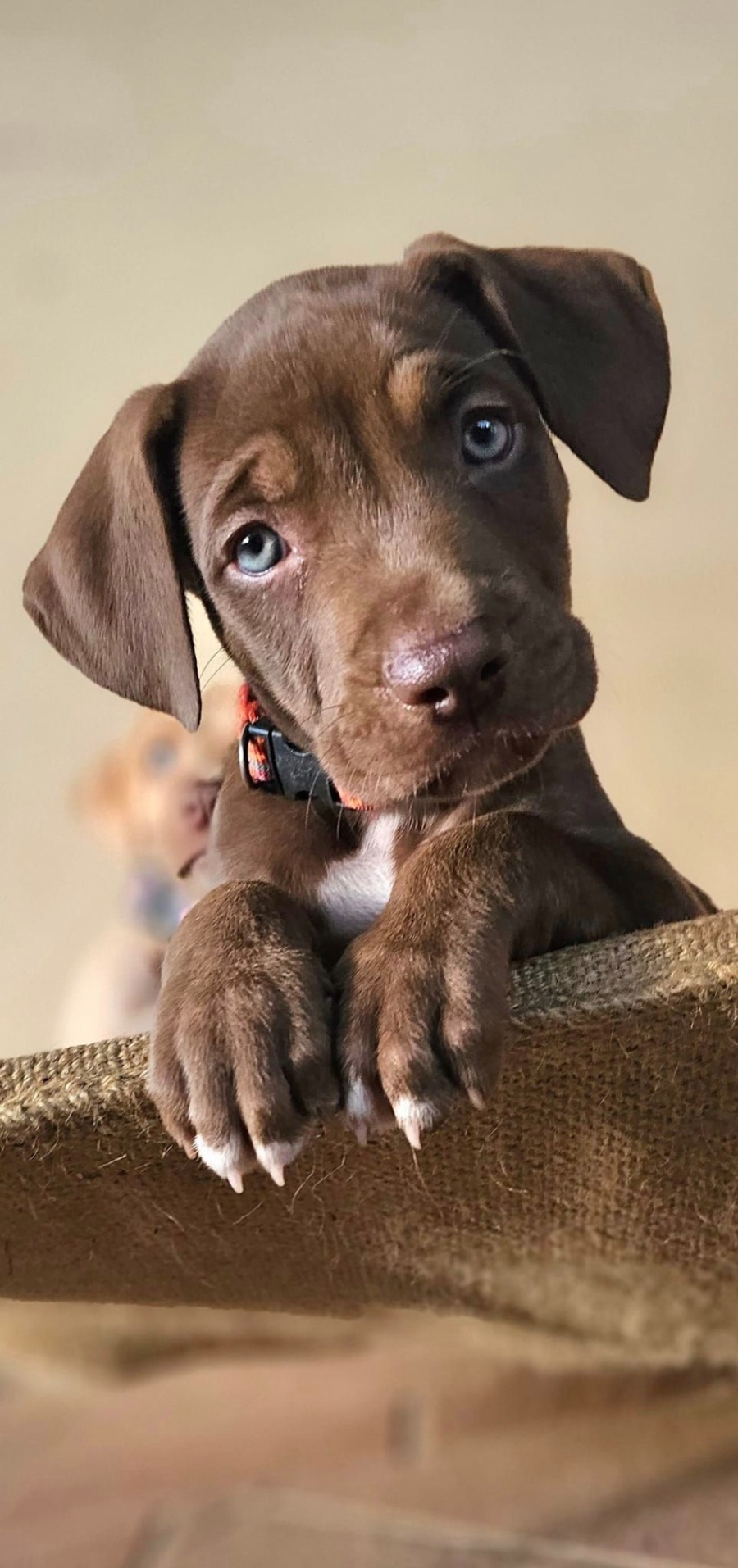 Mousse is a goofy clown with a heart of gold! This chocolate brown bundle of joy loves to play, make people laugh, and get into all sorts of mischief. With his silly antics and adorable expressions, Mousse is sure to bring a smile to everyone's face. He's a bit of a clumsy pup, but his loving nature and playful spirit make up for it.