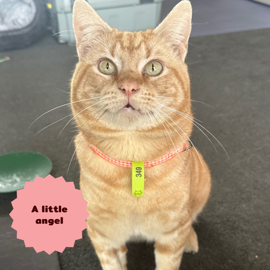 He’s got a soft ginger coat, an adorable face, beautiful eyes, cheeks that go on forever, and a gorgeous, sweet, affectionate temperament.