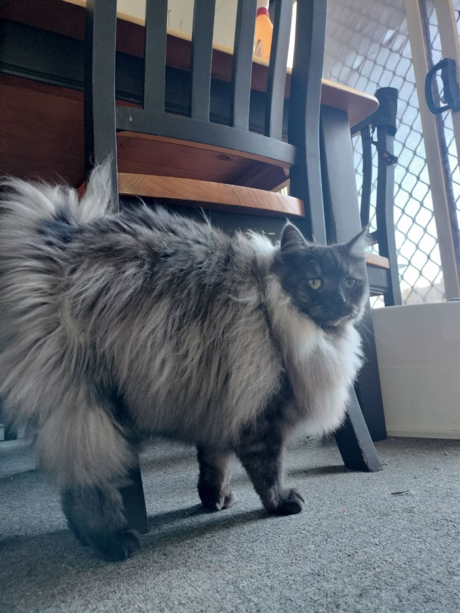 Skye is a 2yo desexed Norwegian foster cat - she is a smaller sized cat , she does get along with other cats lived with 2 others but surrendered as after trying for so long (she was already rehomed once) she hates dogs and cannot seem to over come it.