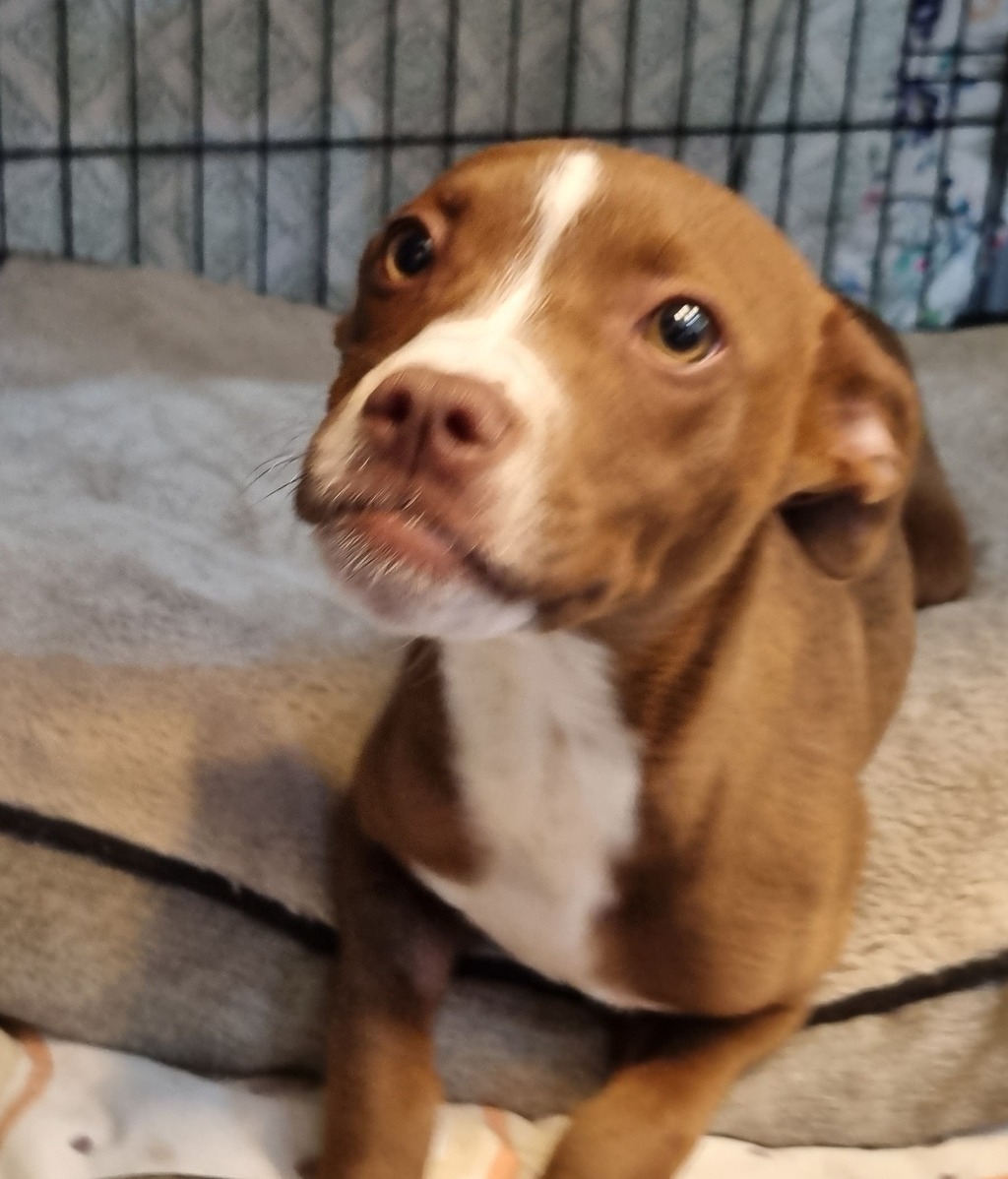 Lydia is a resilient 5-month-old desexed female American Staffordshire Bull Terrier/Kelpie mix with a tan coat. Despite a rough start to life, Lydia has shown incredible strength and a gentle spirit. She's now looking for a loving home where she can truly thrive. Lydia is a sweet and affectionate pup who just needs a bit of patience and care to help her blossom into the confident dog she's meant to be. She deserves a forever family that will give her the love and stability she's missed out on so far.