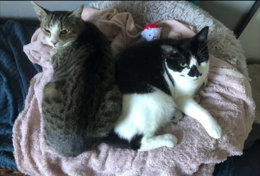Biscuit and Marble love to snuggle together and will follow each other around. Biscuit is Marble’s whole world and he loves being as close to her as possible at all times. They chat to each other. While they both love human pats and to be part of what you’re doing, they definitely prefer being together and aren’t fussed if you’re busy doing something else.