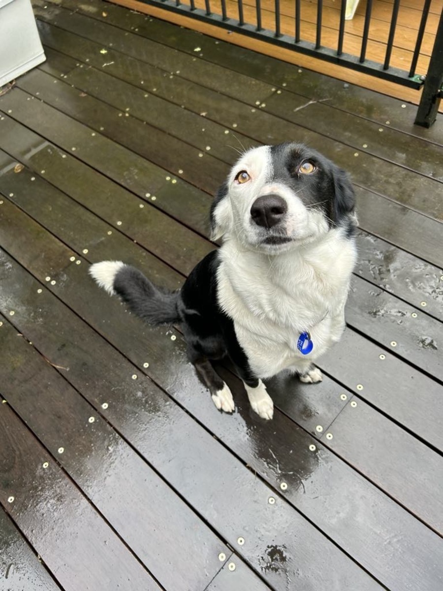 Juniper is a sweet and affectionate girl who loves people and is great with kids. She enjoys being around her humans and is always ready for a cuddle or a nap on the couch. As a Border Collie cross, Juniper has a calm demeanor for a working dog. She is quite low-energy, perfectly happy with a daily walk, and content to relax at your feet throughout the day.