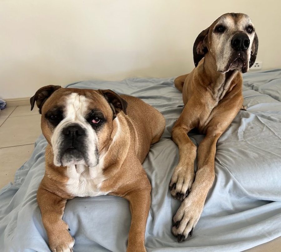 Humphrey (Dane) & Louie (Bulldog), both aged 7 years, are such sweethearts 💕.