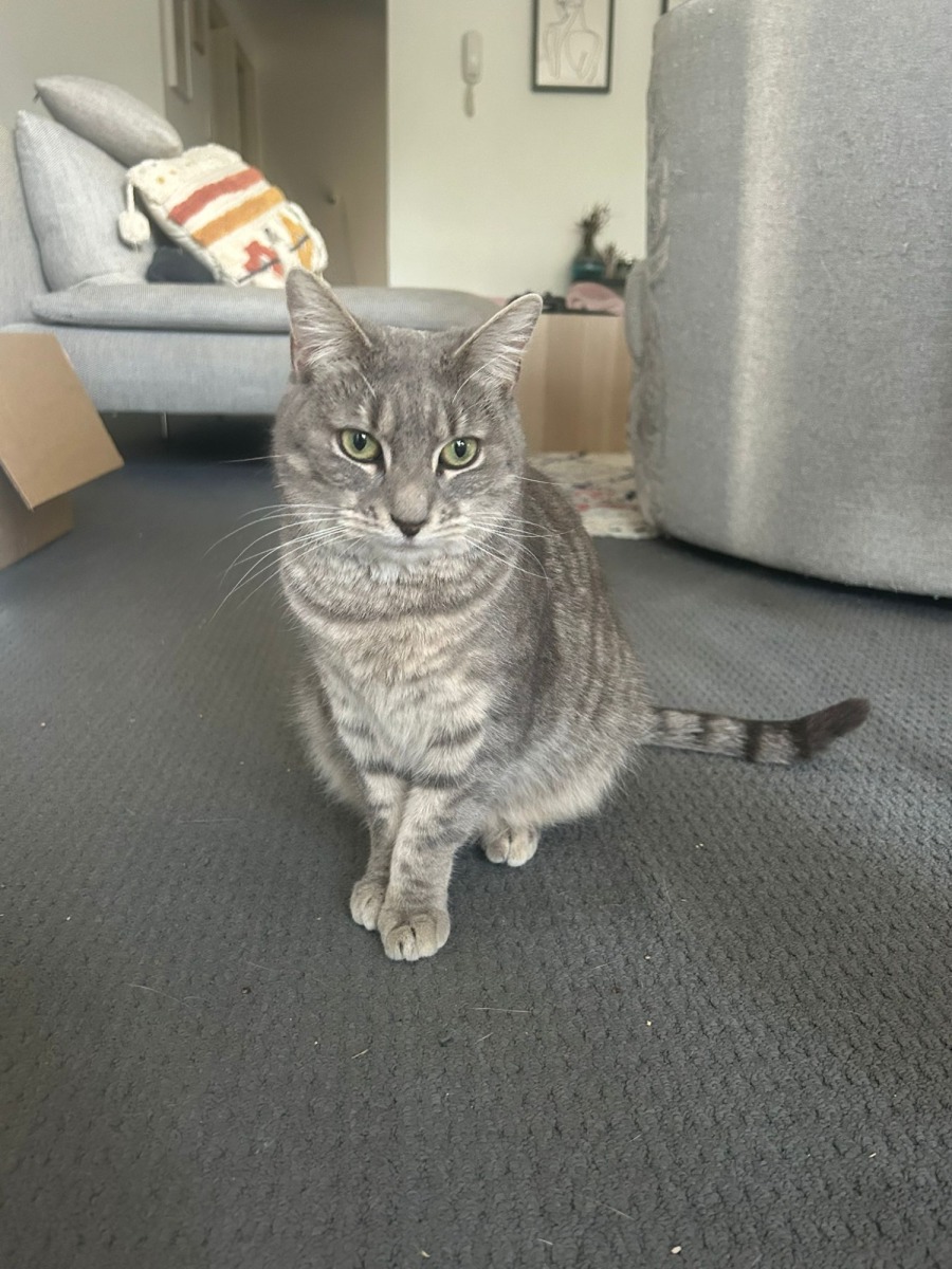 In addition to her playful and social nature, Bonnie is undeniably beautiful, with a stunning grey tabby coat that only adds to her charm. She thrives in a loving environment where she can soak up the sun, play to her heart's content, and enjoy the companionship of her human and feline friends.