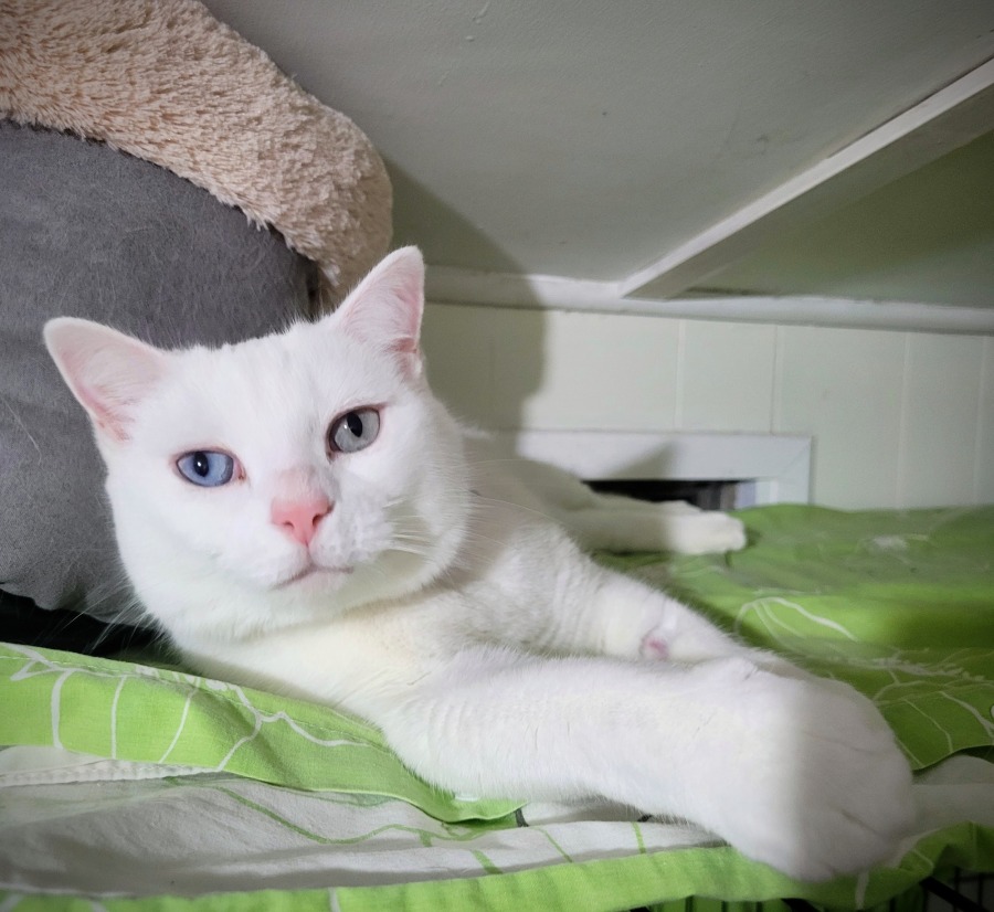 She needs a indoor home as she is a pure white cat and is at greater risk of sun cancer.