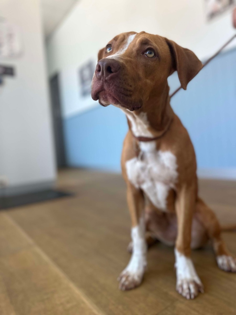 Meet Oakey, our delightful 9-month-old Staffy cross puppy!