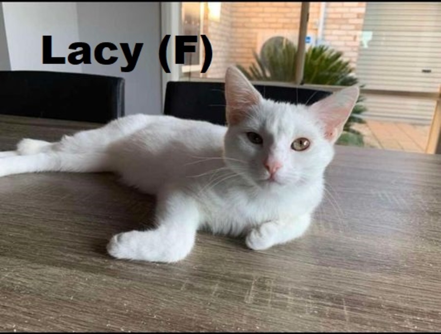 Meet Lacy! This stunning pure white kitten, approximately 5 and a half months old, is a beautiful ball of energy and affection, ready to bring happiness and joy into her new family's life.