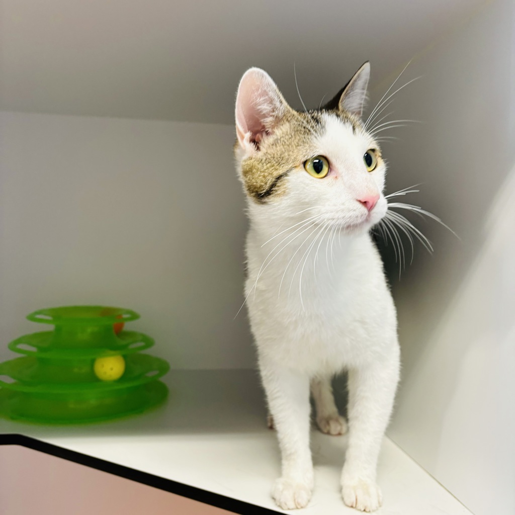 Meet Monkey, the playful 1-year-old kitty who's always up to a little monkey business! This affectionate boy loves to chase after toys, explore every nook and cranny, and keep you entertained with his curious antics. When he's not busy being the life of the party, Monkey enjoys a good cuddle session and adores all the pats he can get. With his loving nature and playful spirit, Monkey would make a fantastic addition to any family looking for a fun and affectionate feline friend. Ready to add a little monkey business to your life? Monkey is waiting to meet you!