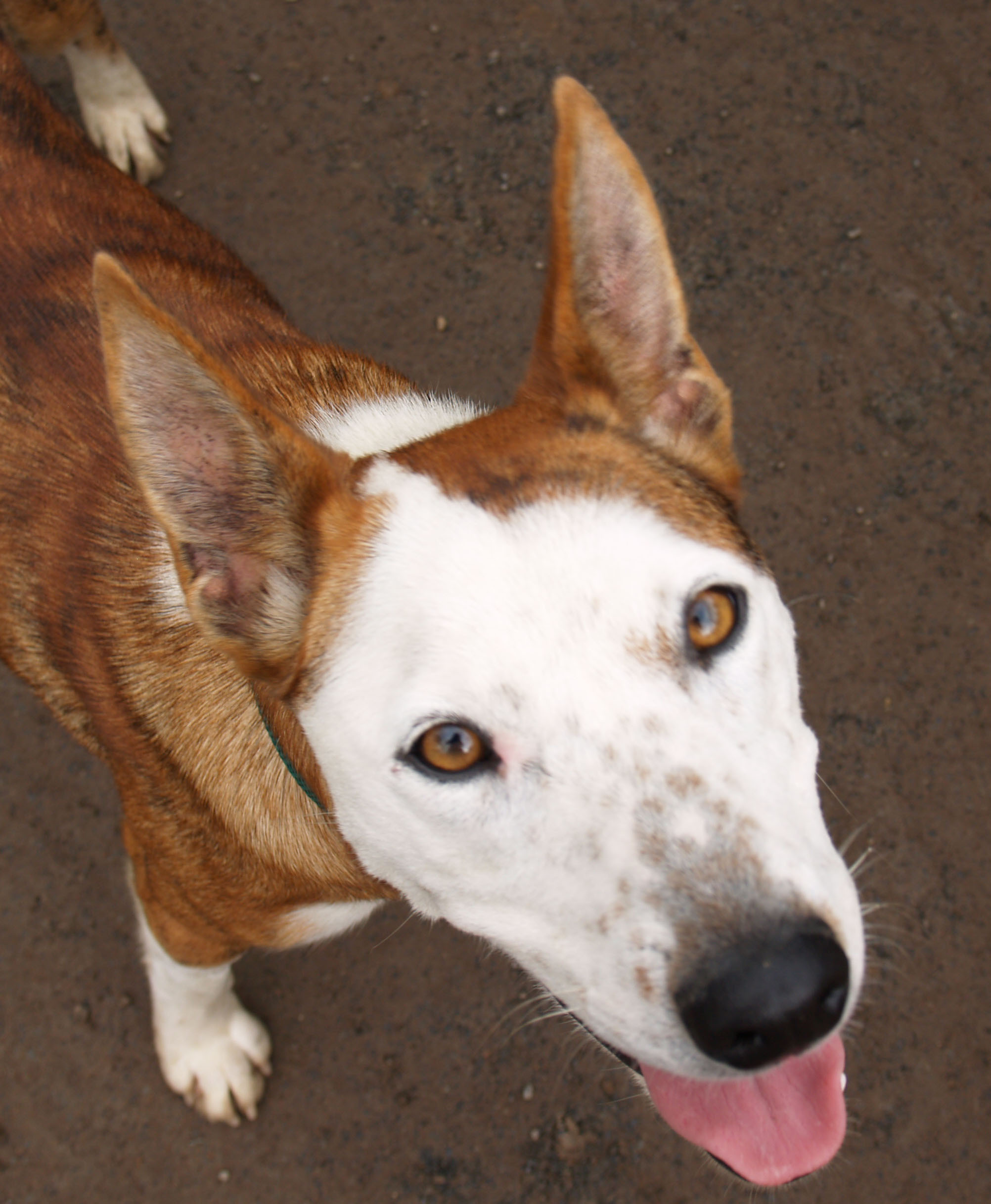 Chelsie mai’s teenage owner had to move out of the area with her mother, before they left towards the end of last year they organised a new home for chelsie mai with and older man who lived in the same street. Not long afterwards he became unwell so was not able to look after her anymore. He son jack decided to take chelsie mai and promised his dad he would look after her. He had always had foxies so was not sure how much to feed her and she seemed to be always hungry yet loosing weight. He did not know what to do as he didn’t have any money to spend on a vet. A volunteer for happypaws haven lived in the same street and observed how skinny chelsie mai was getting so suggested that she should be surrendered to happypaws haven and he agreed. Chelsie is a lovely dog at just over 12 months old, gets on with other dogs and cats. She was full of worms and fleas when we got her, but that is all fixed now she is putting on weight again, she has been de-sexed, chipped and immunised and is ready for a new home. Ideally she should have another dog to play with and some kids and should not be left for hours on end without human contact or she will become a barker. She loves kids to play with her so we hope a lovely family will come to adopt her