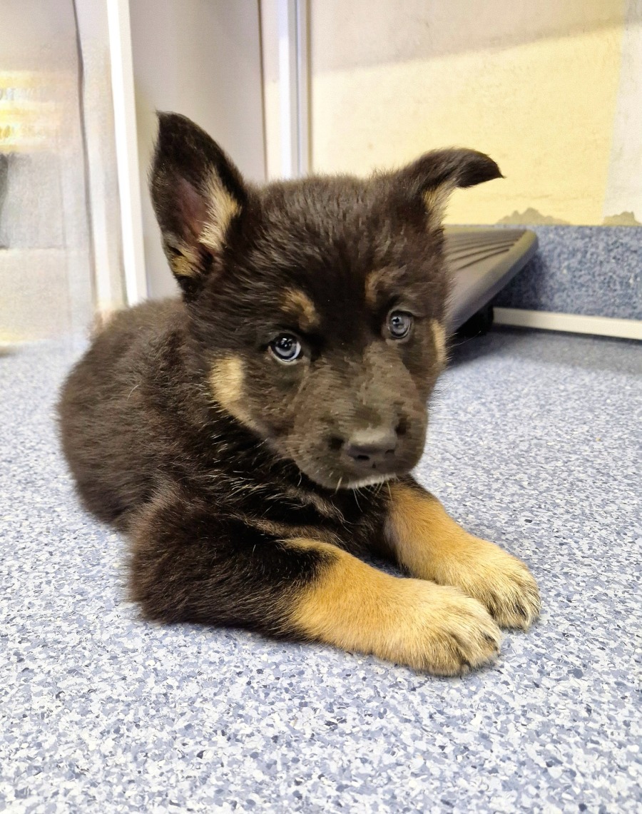 Meet Sadie, a very sweet pup who's bound to grow into a loyal and attentive companion. This little lady is a stunning mix of German Shepherd and Husky, destined to become a large, strong dog. She is doing very well with her toilet training, showing early signs that she’s eager to learn and adapt.