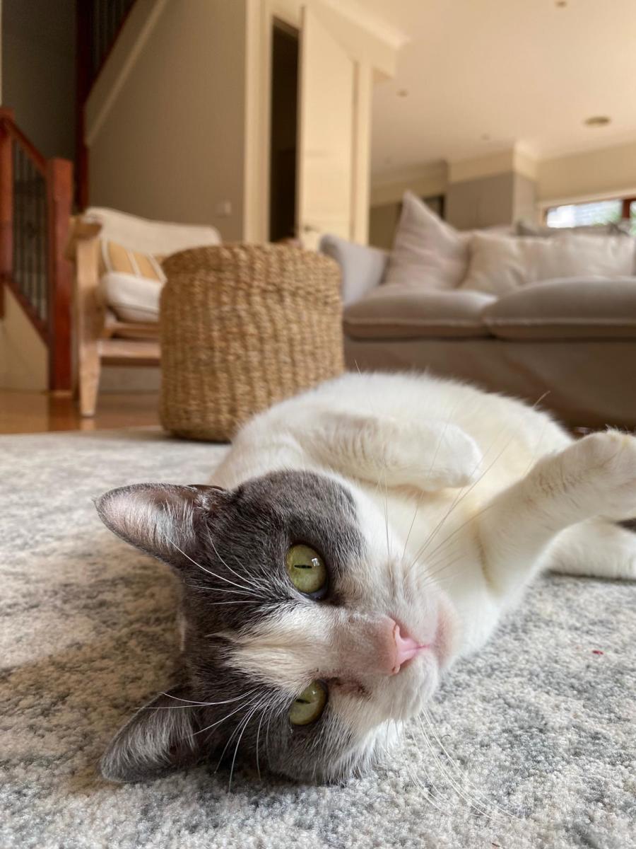 Fred likes his own space, but will also get FOMO if he hears you chatting in the next room without him. He’s still getting his head around the concept of sharing a couch or curling up on a bed with someone else on it, but he will happily settle into a nearby chair or other cosy spot with you in his sight. He loves to be in the company of the people he trusts, and he’s generally super chill and independent, but he can be very playful and energetic given the opportunity. Initially, Fred appreciates his hidey-holes as he susses out a new place, and when he feels a bit unsure or overwhelmed he will sometimes gravitate to these areas for a sense of protection. We think he’s most suited to a quiet, calm home without other animals, but he’s shown so much growth over the past few weeks, he has the potential to be increasingly adaptable.