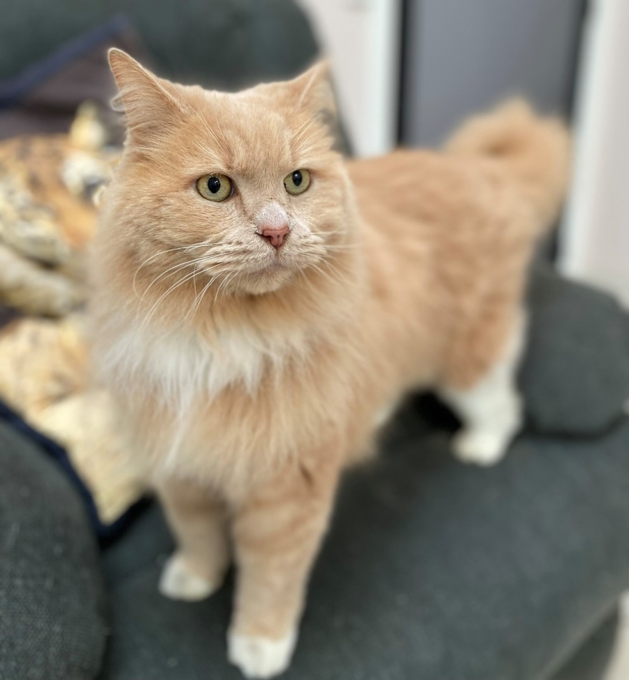 Introducing Garth, the epitome of feline elegance wrapped in a luxurious champagne-colored coat that shimmers in the light. This regal cat possesses a demeanor that speaks of aristocracy, yet his heart is as warm and affectionate as they come. Garth's striking appearance is complemented by his friendly and approachable nature, making him the perfect companion for anyone looking to add a touch of sophistication to their home.