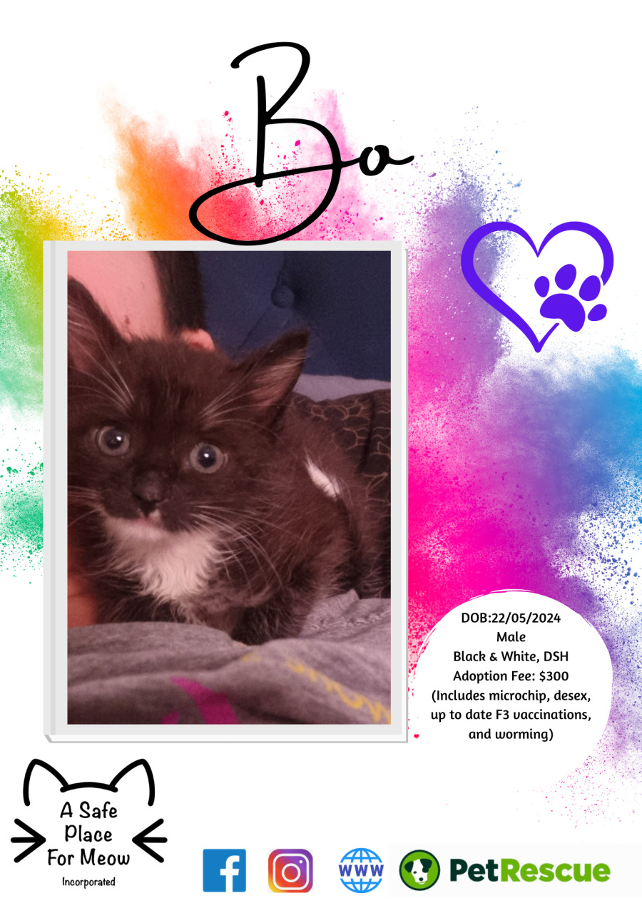 Timber and his brother Bo were brought into our care as tiny 3 week old bubs who were bottle fed by their wonderful foster mum so they are extra smoochy and cuddly. Bo is a chill little guy who would love to be adopted with his brother Timber, but will be fine alone.