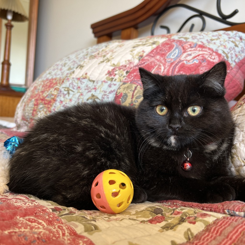 Stunning, amber eyed DIANA #792 is a British shorthair cross with a soft, thick dark tortie coat. She and her sisters came into care as very frightened kittens and have taken some time to calm down and get used to being handled. Diana needs a quiet home where she can continue to gain confidence and bond with her special person. We are sure she will develop into a well rounded and affectionate cat. Diana is about four months old and her adoption fee will cover her (future) desexing, microchip, vaccinations, worm/flea treatment and vet check.