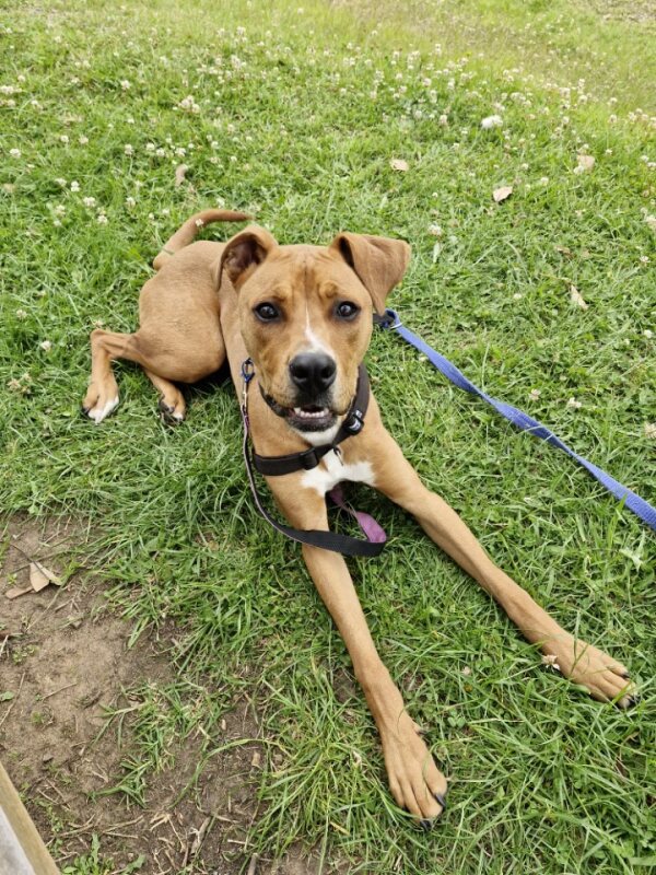 Hey there, I'm Fletch! I'm a 10-month-old male large breed mix puppy looking for a forever home. I am a tall, leggy boy with plenty more growing to do; I am currently around 27kg. With lots and lots of energy to burn, I would suit a family who can keep up with me. I love learning about life, and I'm eager to explore new things each day. I would suit a home where I'm not left alone for extended periods as I love hanging out with my humans and doing all the fun stuff together. I do love company, but I'm also okay with some alone time if I have things to keep busy and a place to access inside your home where I can retreat to and rest. I don't mind other dogs, I love to have a rough and tumble with some doggy friends during my time at shelter and while I was in foster care.