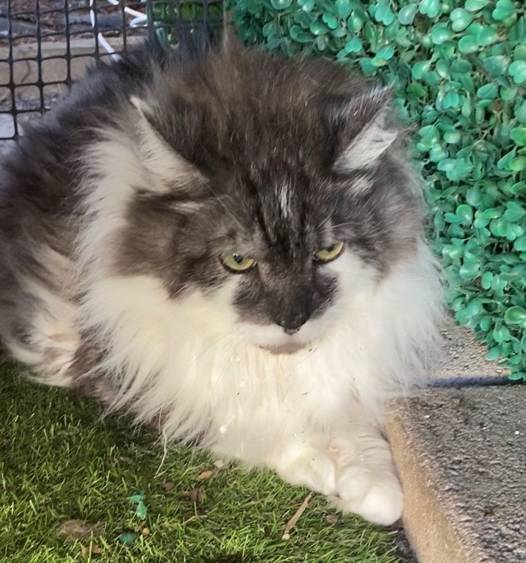 His body has been shaved due to being very knotted and will require frequent grooming to keep his beautiful fur looking sleek. He still has his fur on his handsome face and kept his fluffy tail.