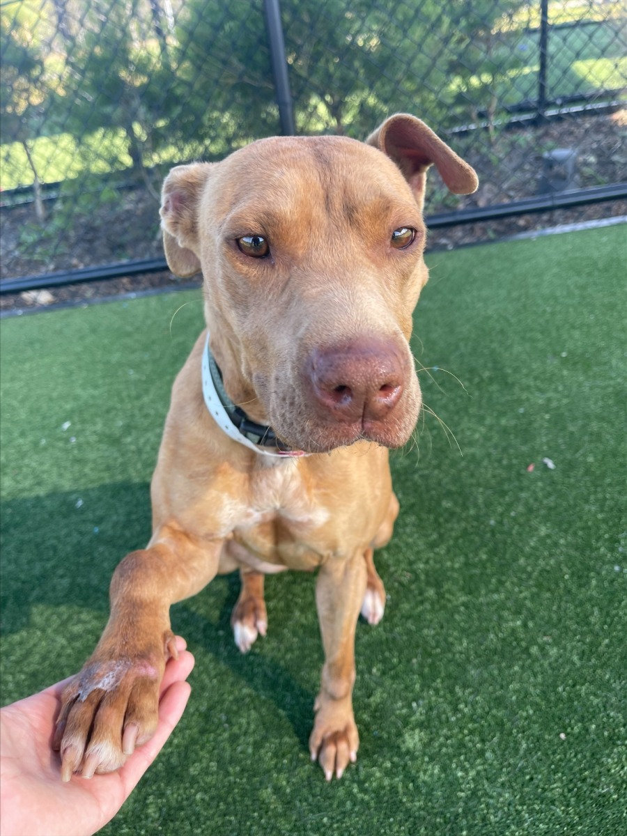 Cali is full of energy, but her food-motivated nature makes her an excellent candidate for further training, as she’s always eager to learn when there's a tasty treat involved. Due to her energy levels and need for some training around other dogs, she would do best in a home with older kids who can keep up with her playful spirit and as the only dog.