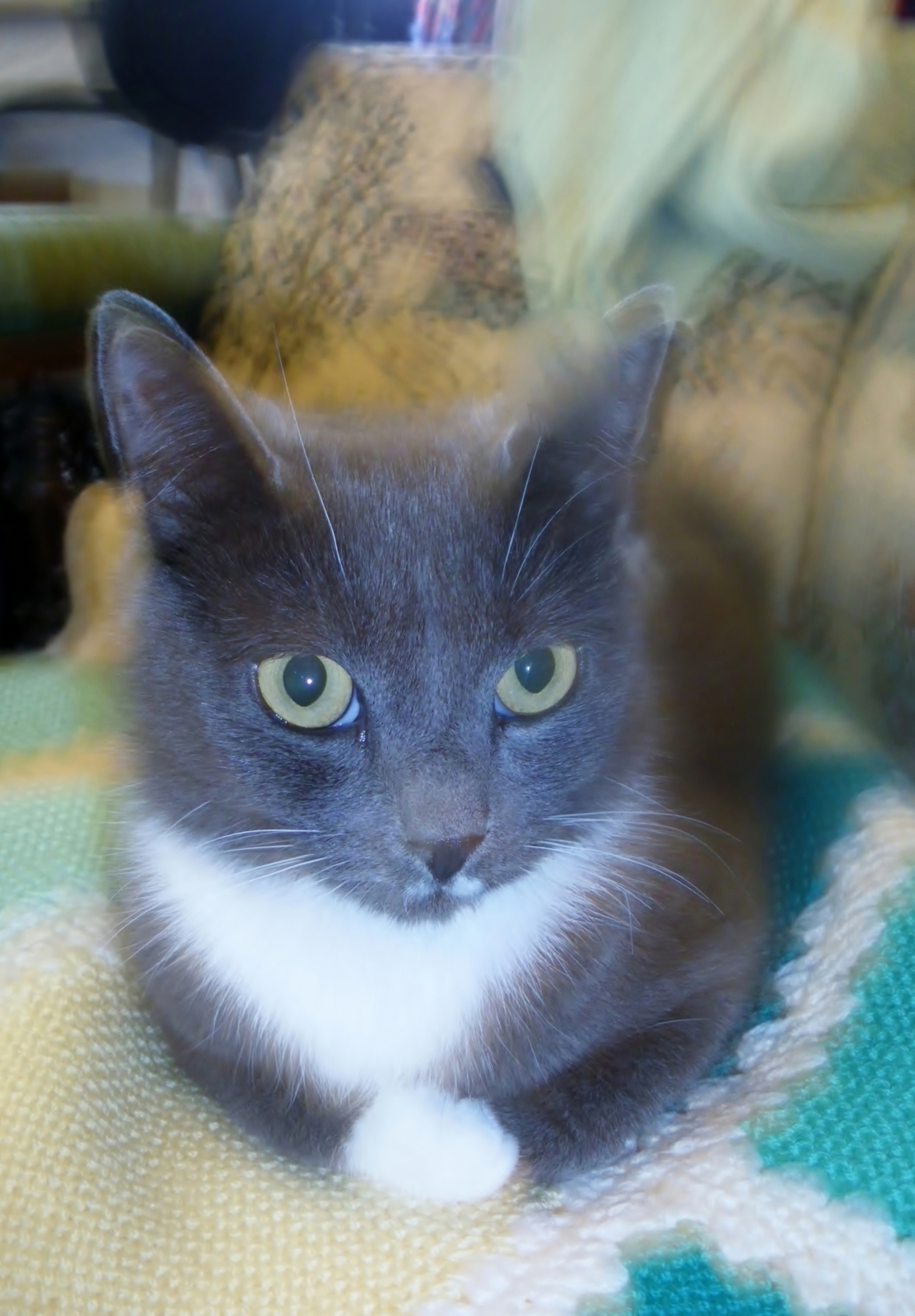 Lily is a friendly well adjusted blue and white girl who needs to go to an indoors or protected environment. She was found in someone's garage where she had had her kittens(two of them)she is being cared for by louise of dabs