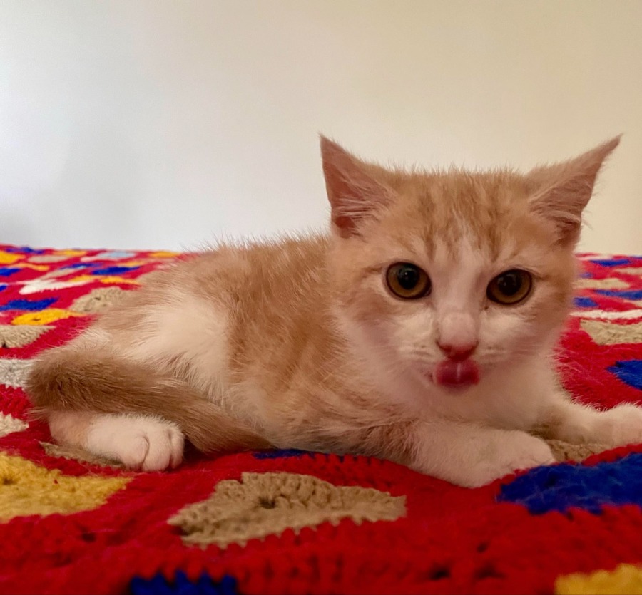 Harris came to our rescue with other cats/kittens found by the local butcher. He is adorable although still a little shy. He has the most beautiful champagne colours and as he gets older, he will be a strikingly handsome boy. He loves him pats, treats and playtime. He loves to be cuddled and will stay on your chest for as long as you want