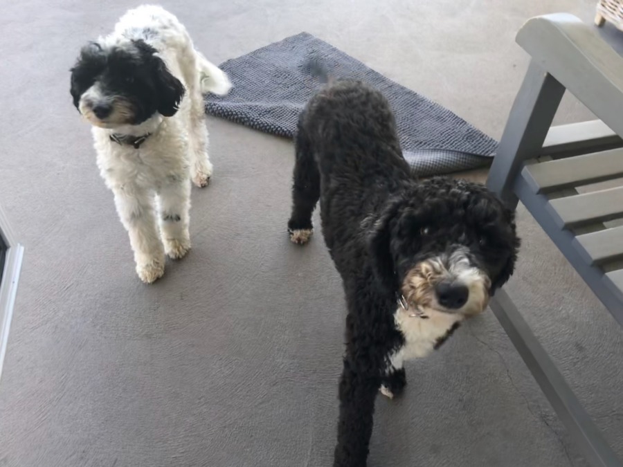 Frankie and Rosie are desexed 4.5 year old Sheepadoodle (Poodle cross Old English Sheepdog) sisters who need a new home because we are moving and they can't come with us. They have grown up together with two young children and are very friendly dogs with happy temperaments. They are both social dogs and are not aggressive or wary of strangers although they can get very excited and jump when meeting people for the first time.