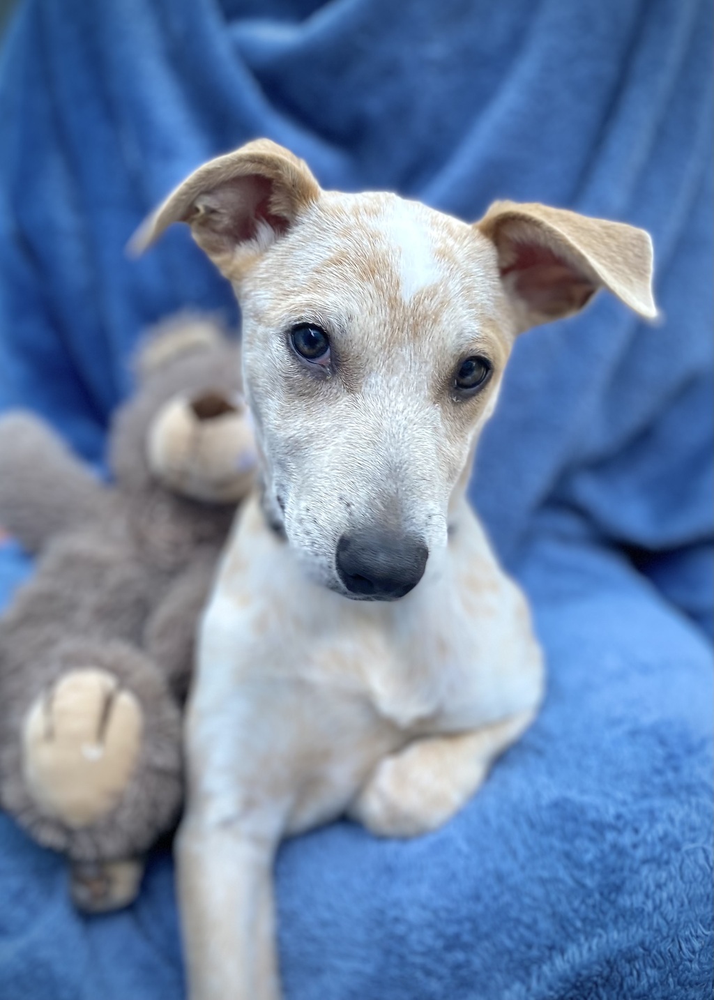 These 3 beautiful puppies are a mix of cattle dog & whippet. They were abandoned & left to fend for themselves, then to be found by a good Samaritan who saved them. We are just getting to know them & they are sweet, gentle souls who love nothing more than cuddling in with their carers. They will most likely end up as medium sized dogs &, given their combined breeds, will need the daily opportunity to go for a good run! Cattle dogs are full of the super smarts & whippets are FAST! We believe that if their needs are met, they will make wonderful family members.