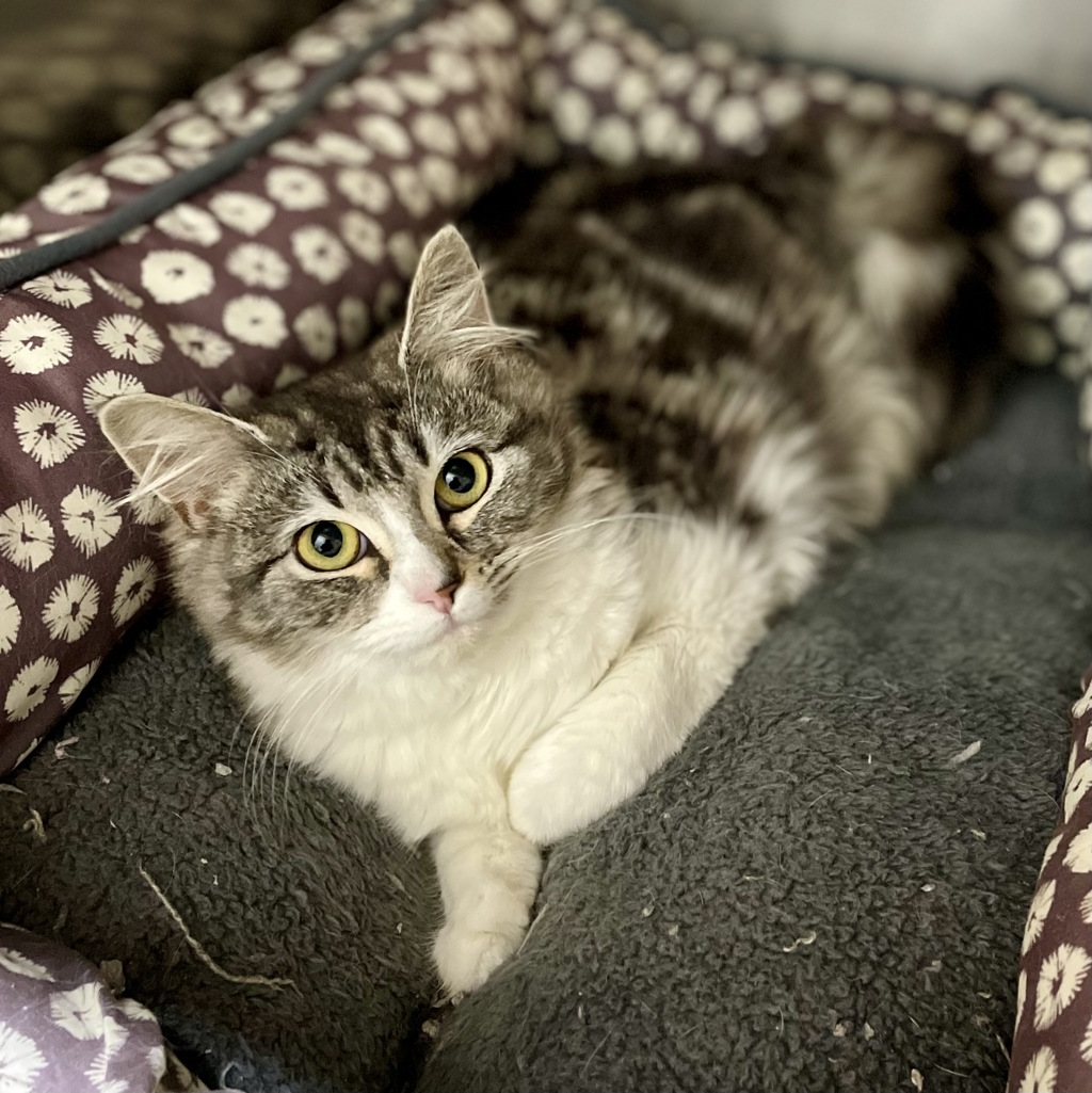 Meet the gorgeous and sweet little lady we call Poppy. Poppy is a shy girl who is looking for a loving home. Poppy likes to spend her time curled up in her comfy bed or enjoying the beautiful sunshine. Poppy can find new experiences and new people a little scary sometimes, but with a little patience her snuggle bug nature will shine through! Poppy isn't a very playful kitty and would prefer to spend her time with her favorite people, either curled up on their lap or watching them from her favorite viewpoints. If you're looking for a loving and easy-going cat, then Poppy is the one for you!