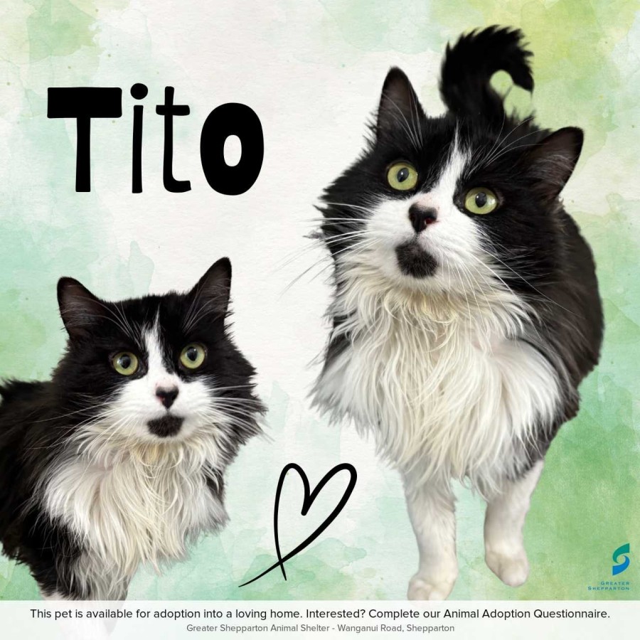 If you think "TITO" would make a great addition to your family, please complete an Animal Adoption Questionnaire online & a shelter staff member will be in touch if successful.
