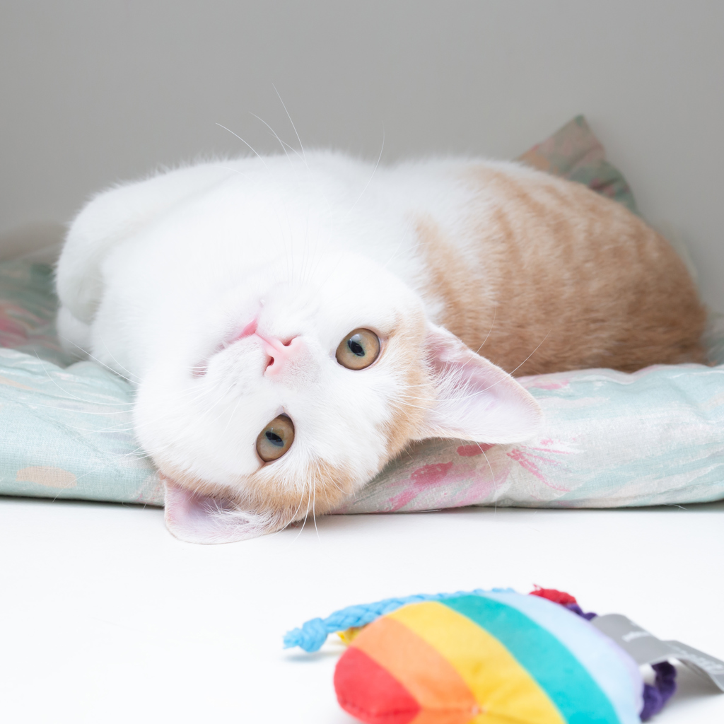 A true cutie, both inside and out, I'll charm you from the moment our eyes meet! I've got a real curious streak; with my adorable head tilt, I'll watch my humans go by from atop my cat tree or the windowsill. When I'm feeling playful, which is often, I'll run down and engage in a game of chasey with my beloved ball or string toy.