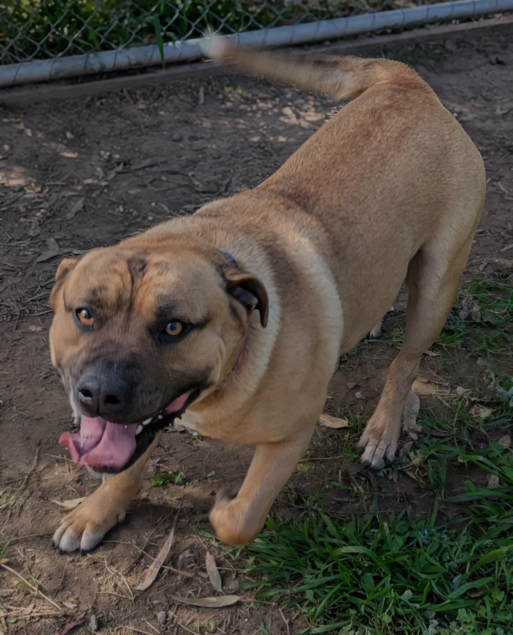 Introducing Jimmy Neutron, the 2-year and 5-month-old Staffy cross with a big heart and even bigger personality! This beautiful boy weighs in at 29.5 kilos of pure love and devotion. Jimmy is all about being with his people - he's super affectionate and will make an amazing companion once he's had some training.