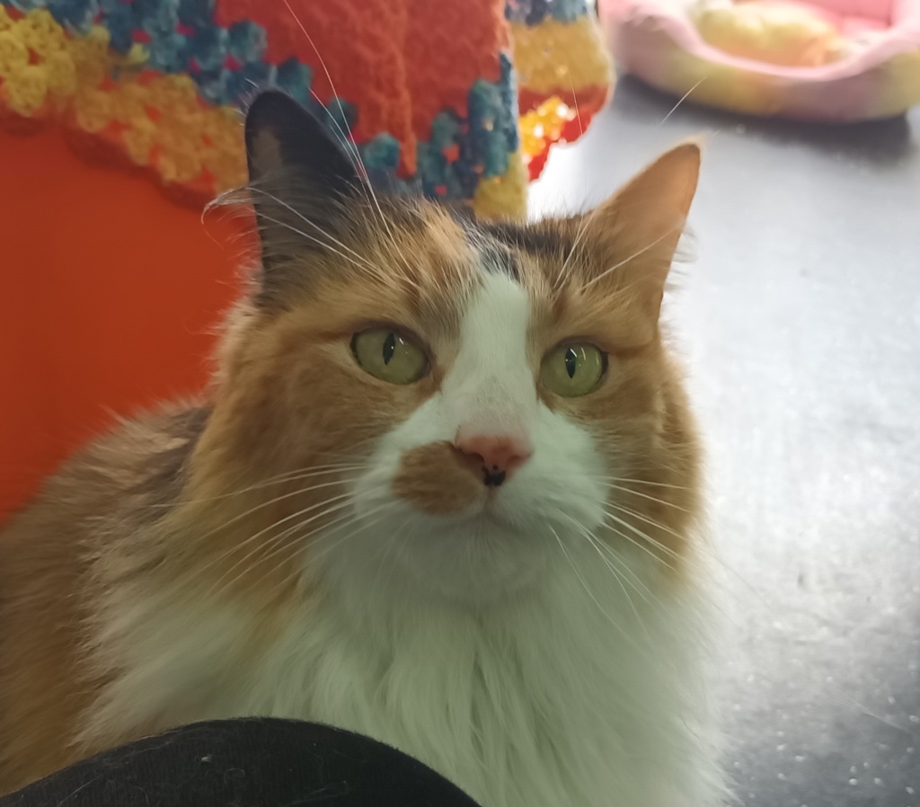 I'm an 8-year-and-6-month-old Domestic Medium Hair with a gorgeous Torti and white coat, and I'm quite the independent lady if I do say so myself. I'm on the lookout for a home where I can relax, stretch out, and keep an eye on things from whichever spot I decide is just perfect for the day. I'm not the type to be all over you, but don't worry-I'll be your quiet companion, always watching over the house and keeping you company from my favorite perch.