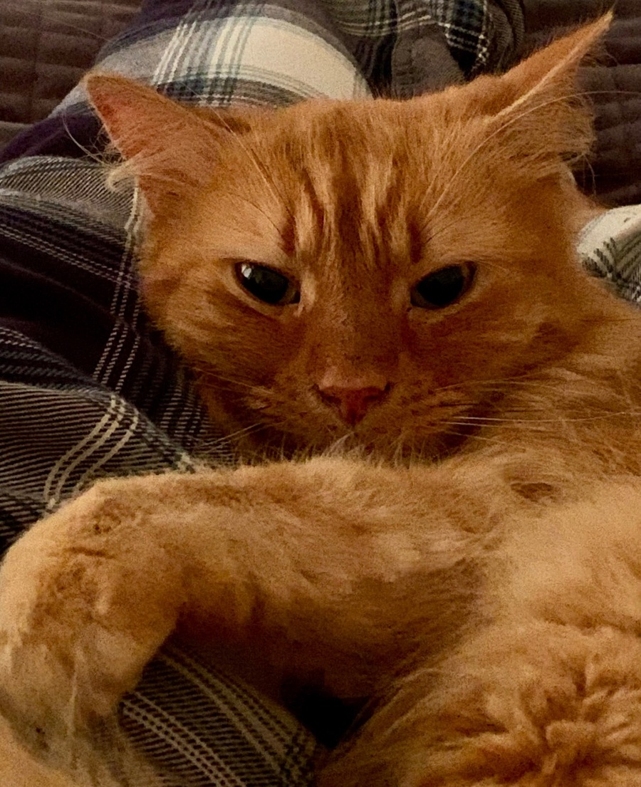 He is also very food motivated and will always be around, rubbing up against your legs, when you're cooking in the kitchen.