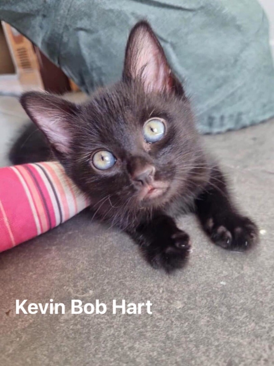 Kevin is a cheeky fun loving kitten. His favourite toy is the cat tunnel. He loves to zoom and play with all members of the foster family big and small. When the chaos and zoomies are done, Kevin loves to be picked up and held like a baby for belly rubs and cuddles.