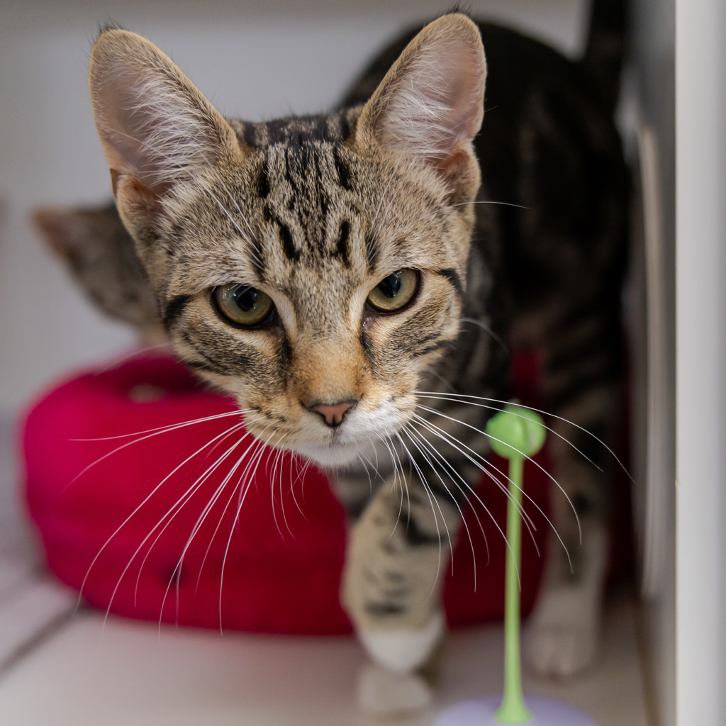 Hey there, I'm Sting. I'm a friendly and affectionate kitten who would suit most homes! My playful paws are always ready to pounce on anything that moves. I love playing with wand toys and mysterious shadows on the wall! When I'm finished playing, I love nothing more than finding a warm lap to curl up in.