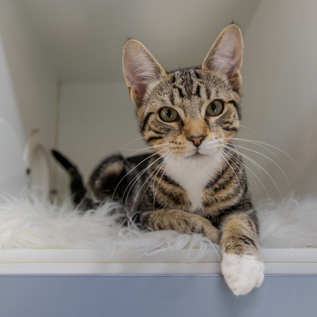 I have perfected the art of the irresistible purr. It's like my secret weapon for getting all the cuddles and chin scratches I could ever want. Life's just one big, exciting string of moments, and I'm here to make every second count - whether I'm chasing my tail or sharing some purr-fectly quiet time with my favourite humans. So, if you're up for a bundle of furry fun and a lifetime of companionship, please consider adopting me!