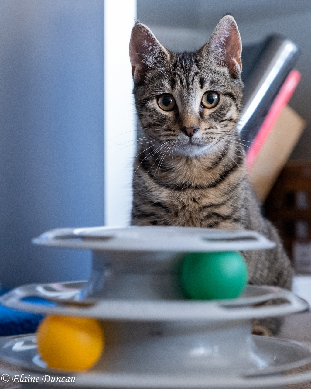 At only 5 months of age, Sarabi is very much a playful kitty who has a particular fascination with toy balls - she could watch them for hours! She loves climbing to the top of the cat tree for naps and watching the happenings of the house.