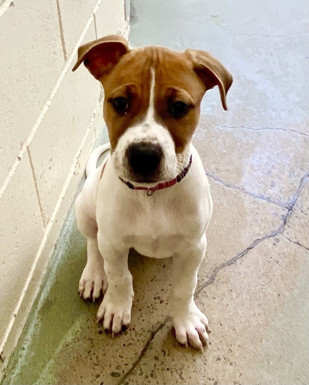 Meet Diva, an adorable American Staffordshire Bull Terrier puppy with a beautiful tan and white coat. Diva is part of a lively litter, all eager to find their forever homes quickly. This playful little pup is full of energy and curiosity, making her the perfect addition to an active family. She loves to explore, play, and snuggle, showcasing her affectionate nature. Diva is ready to bring joy and happiness into your life. Adopt her today and make her dreams come true!