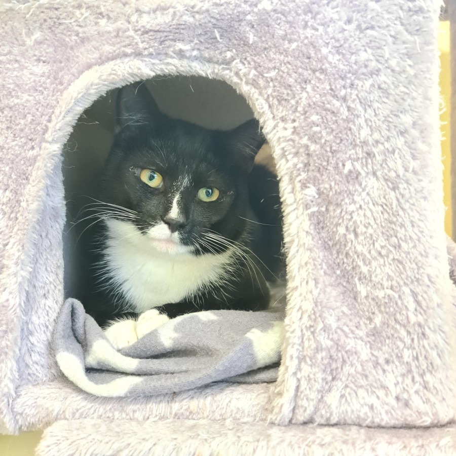 Meet Callahan, a cat with a mysterious and charming personality. This delightful feline loves to spend his time tucked away in his cozy cat house, creating a perfect little hideaway where he feels secure and content. While Callahan might come across as shy initially, with a little patience and understanding, his true affectionate nature will shine through.