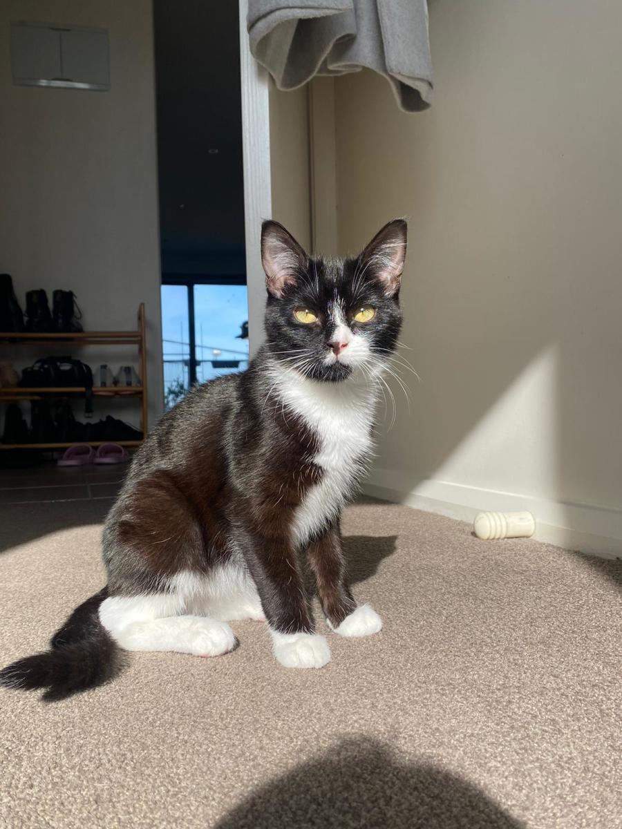 Meet Mia, an absolutely adorable tuxedo cat with a spirit of curiosity and a heart full of playfulness! Her sleek black and white coat makes her stand out, but it's her charming personality that will truly captivate you. Mia is always ready to explore her surroundings and is particularly fond of playing with toys, making her the perfect companion for anyone who enjoys interactive playtime with their feline friends.