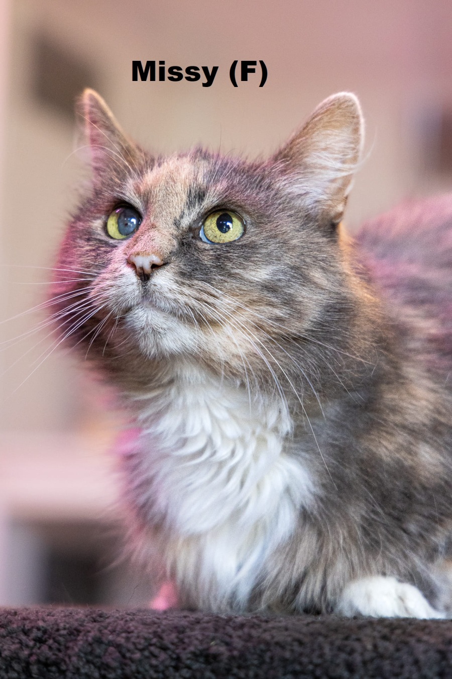 Meet Missy, a charming 7-year-old feline who's ready to fill your home with love and warmth. This chatty lady absolutely adores attention and will gladly make her presence known with her endearing vocalizations. Missy is on the lookout for a loving family who can provide her with a cozy lap to curl up on, as she is a dedicated lap cat who finds comfort in close human companionship.