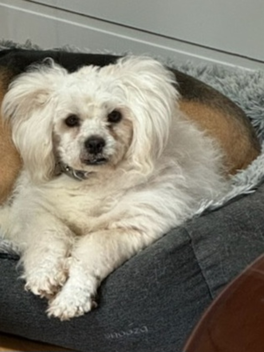 He has a poodle like coat and needs grooming, brushing and his eyes need regular gentle cleaning.