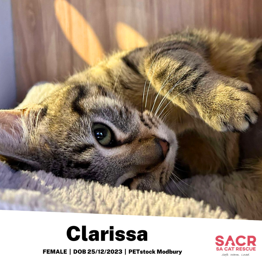 If you're looking for a lovable and endearing cat who will quickly become a cherished member of your family, Clarissa is the perfect fit. She's ready to bring warmth, affection, and a touch of playful mischief into your home.