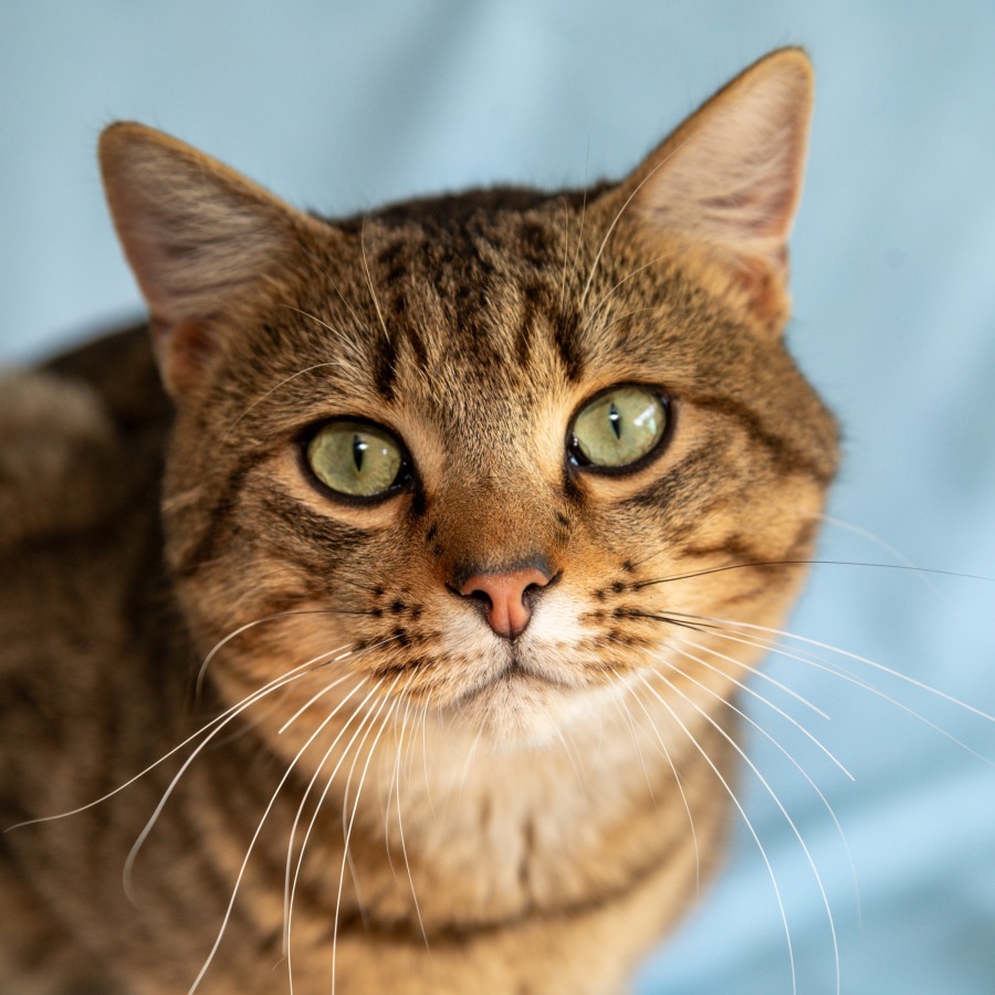 Meet Jack, an exceptionally friendly tabby with stunning green eyes that will instantly capture your heart. His tabby coat is a bit more on the orange side, which is in a nice contrast to his green eyes. Jack is more than just a pretty face; he's a loving companion who adores giving and receiving affection. His love for pats and his signature head butts are just a couple of the many ways he shows his fondness for his human friends.