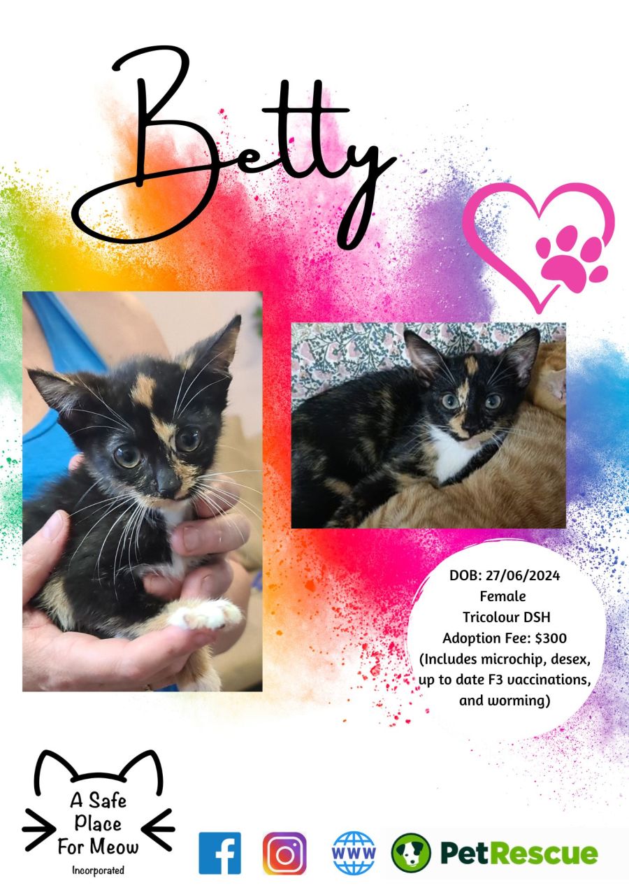 Betty likes to observe her adventurous brothers from the side lines and suss everything out. She is a petite girl, who is starting to show her personality.